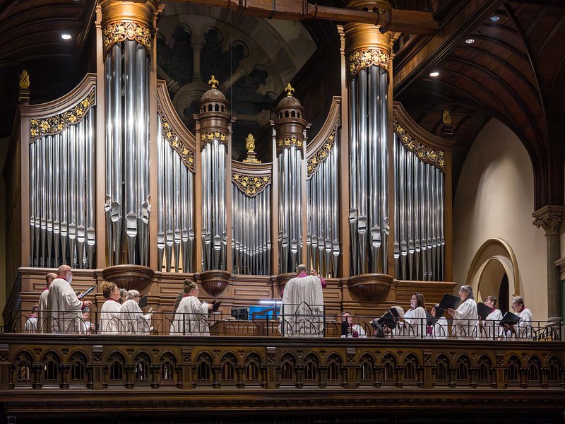 We have an auditioned Cathedral Choir that sings at our 11:15 a.m. service (10 a.m. in the summer months) and quarterly Evensongs, as well as on major feast days. The Cathedral Choir sings music ranging from Renaissance and Tudor motets, Bach cantatas, and traditional Anglican choral pieces to new compositions by a diverse set of living composers.