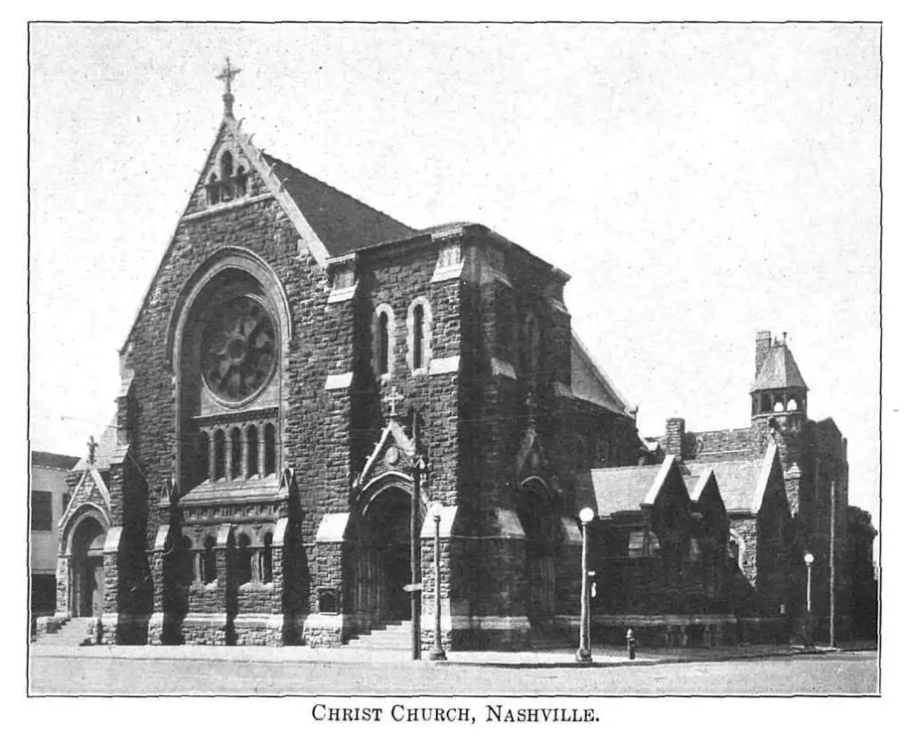 In June 1829, a congregation in Nashville elected the first Vestry of Christ Church and a little over a year later laid the cornerstone of the first Episcopal church structure in Tennessee. By 1837, Christ Church parish had grown to 72 members. Christ Church was fortunate to escape occupation by Federal troops during the Civil War and by 1867 had 145 communicants on its rolls. Construction began in 1889 on the current structure at 9th Avenue and Broadway, a building now listed in the National Register of Historic Places. It opened its doors for worship in December 1894, the first Eucharist celebrated there on Christmas Day of that year.