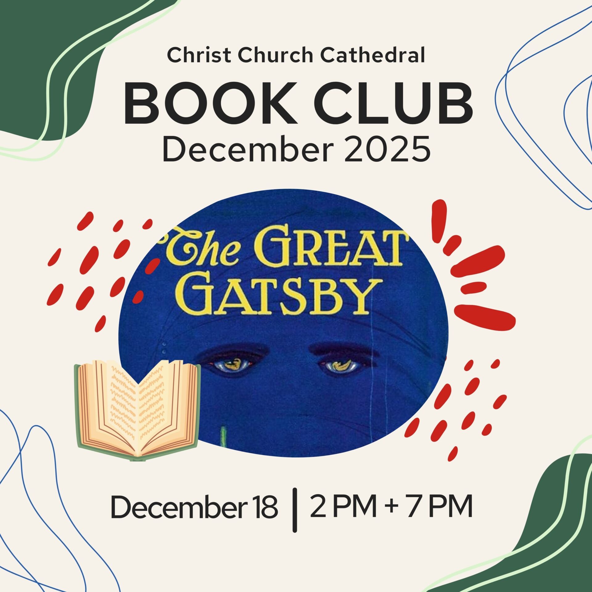 The CCC Book Club is meets the third Thursday of each month with two options for participation: 2:00 PM in the Wheeler Room at Christ Church Cathedral or 7:00 PM at the Diocesan House on Woodmont. This month’s book is The Great Gatsby by F. Scott Fitzgerald. This club is open to anyone who loves to read good books and discuss them. Come, bring a friend, and enjoy conversation and fellowship!