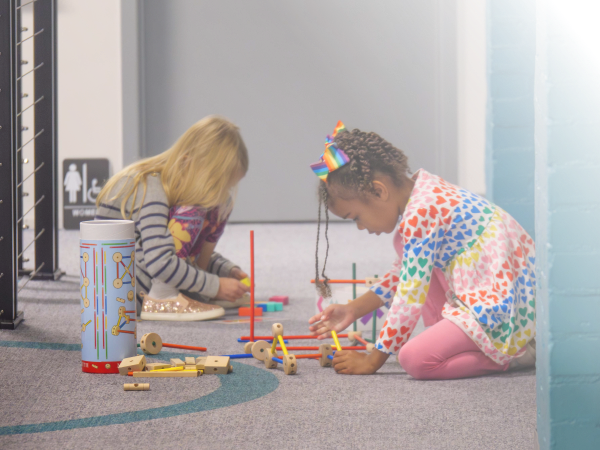 • For infants and toddlers (ages 6 weeks – 3 years old and not yet potty trained), we have a nursery space for them. The Nursery and Toddler Atrium is a caring environment for children to play, read stories, and engage in activities. We provide a snack and ask that you bring a bottle (or cup) with your drink of choice, diapers, wipes, and an extra change of clothes that are all clearly labeled.