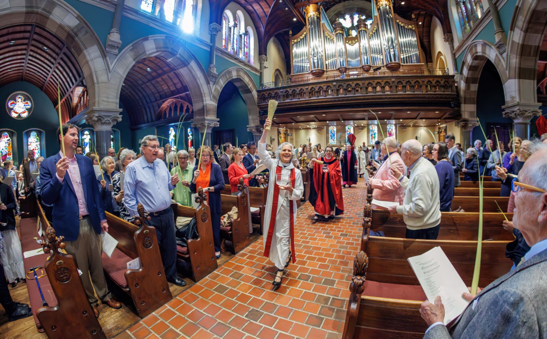 As you enter the Cathedral, you’ll be met by greeters standing outside and ushers standing inside, ready to hand you a worship bulletin and help you find a seat, and point you in the direction of the restrooms (down the hallway to the left of the altar). As part of our commitment to welcome all, we offer a single-stall, gender neutral, accessible bathroom with a changing table on the first floor across from the receptionist’s desk.
